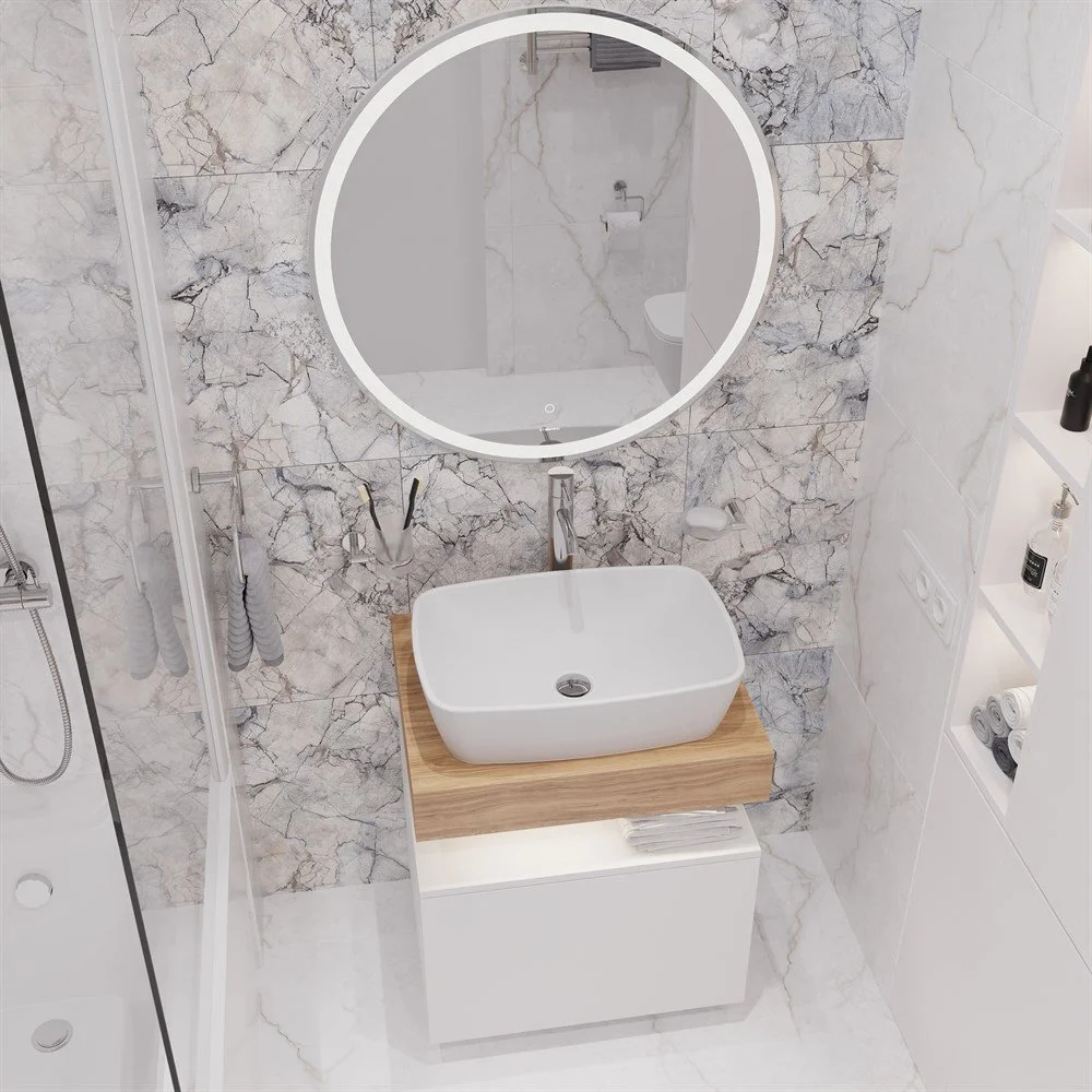 Комплект мебели STWORKI Ольборг 60 столешница дуб французский, без отверстий, с тумбой 60, с раковин