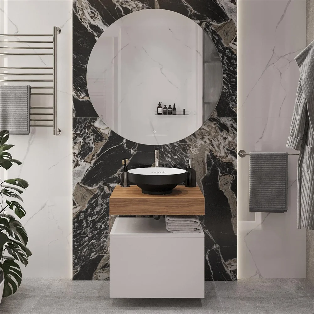 Комплект мебели STWORKI Ольборг 60 столешница дуб французский, без отверстий, с тумбой 60, с раковин