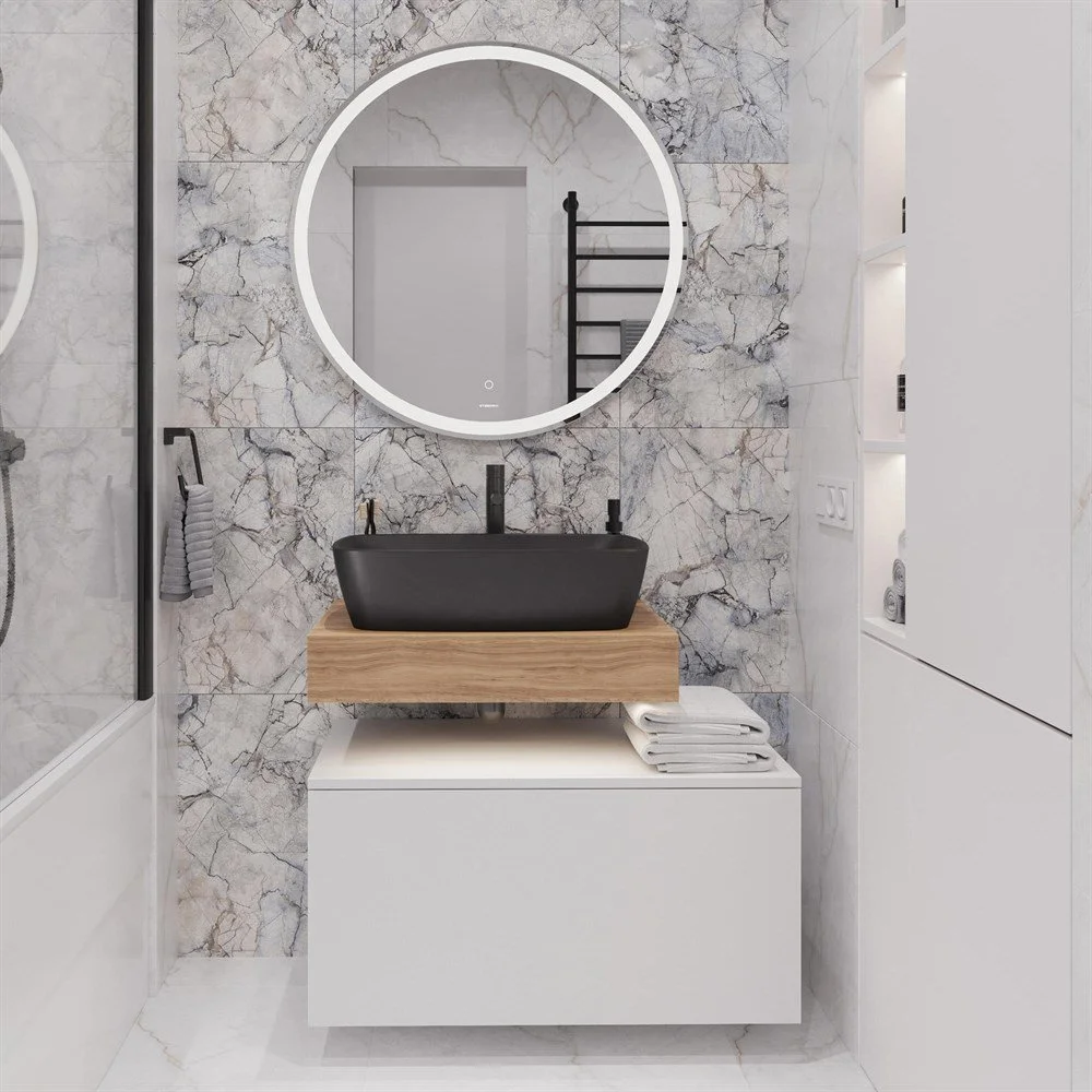 Комплект мебели STWORKI Ольборг 60 столешница дуб французский, без отверстий, с тумбой 80, с раковин 542478