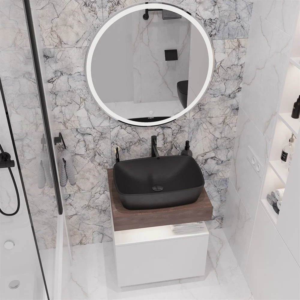 Комплект мебели STWORKI Ольборг 60 столешница дуб карпентер, без отверстий, с тумбой 60, с раковиной