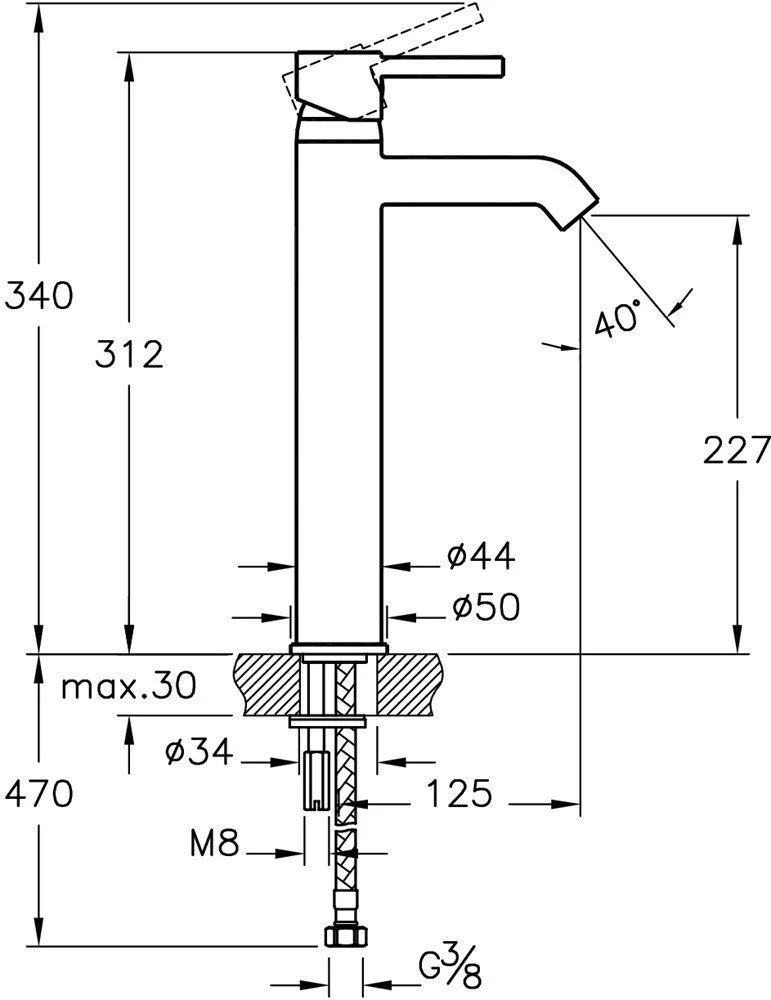 Комплект мебели STWORKI Ольборг 60 столешница дуб карпентер, без отверстий, с тумбой 60, с раковиной