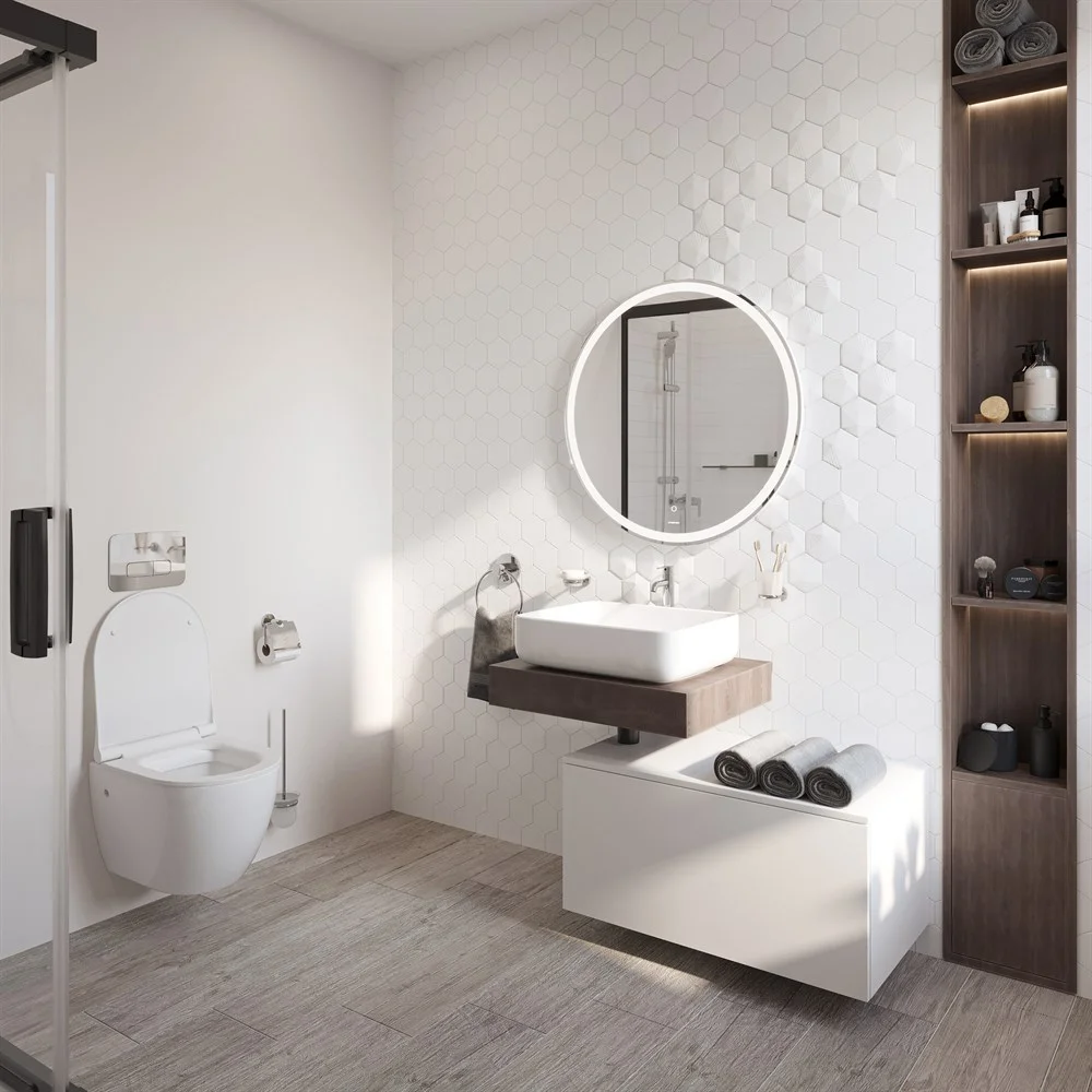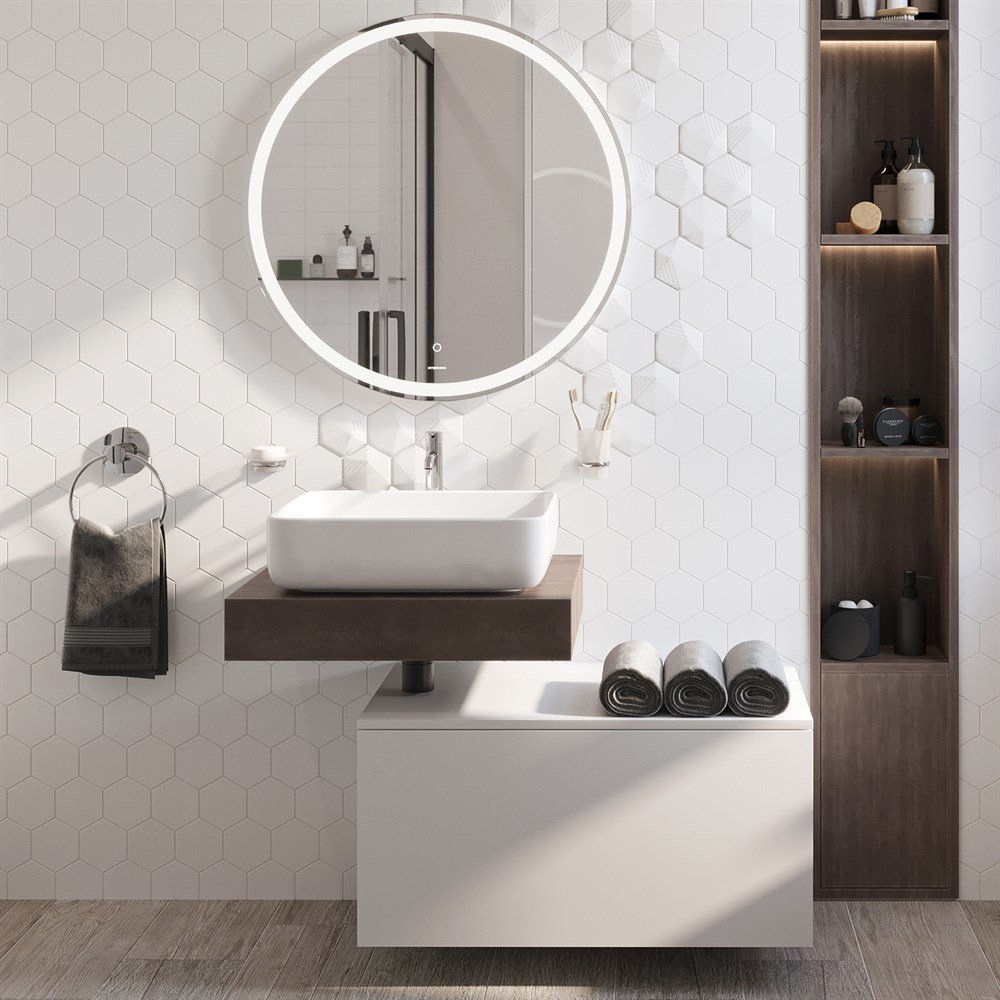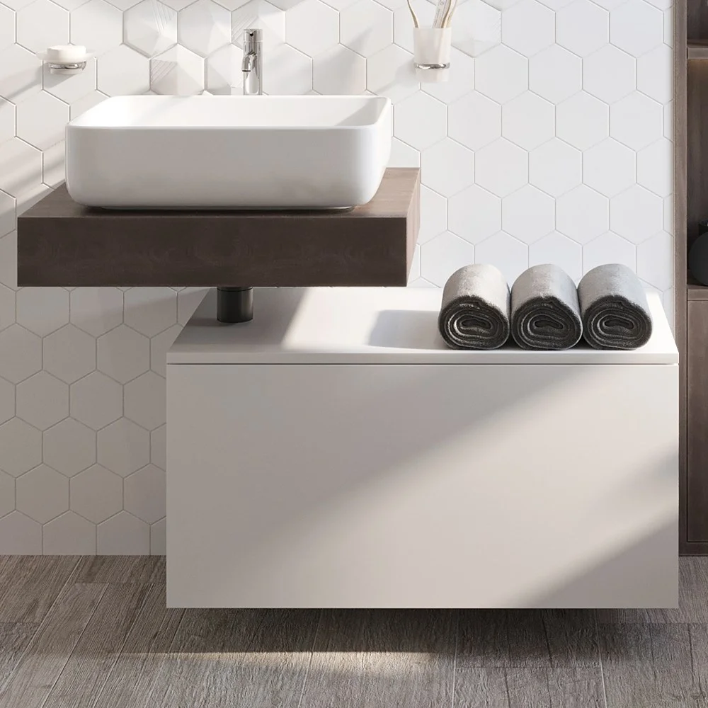 Комплект мебели STWORKI Ольборг 60 столешница дуб карпентер, без отверстий, с тумбой 80, с раковиной