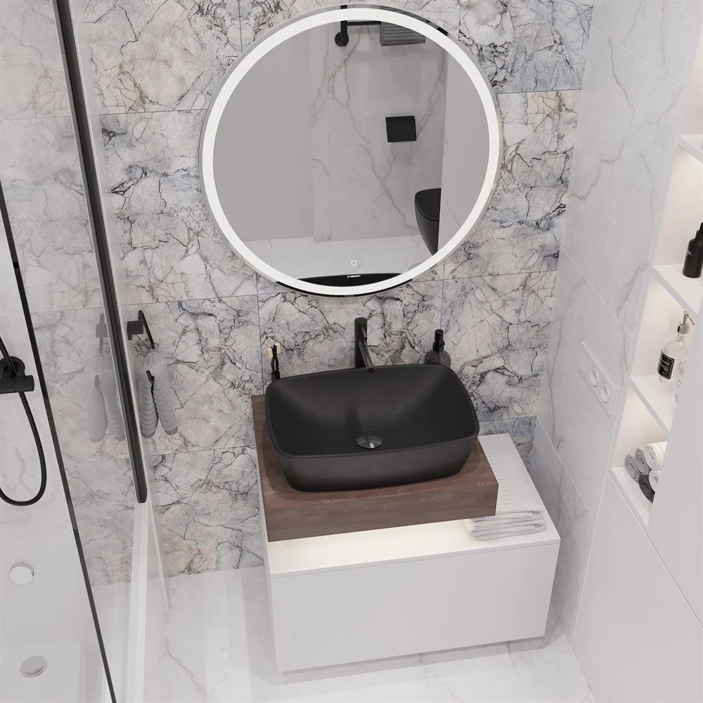 Комплект мебели STWORKI Ольборг 60 столешница дуб карпентер, без отверстий, с тумбой 80, с раковиной