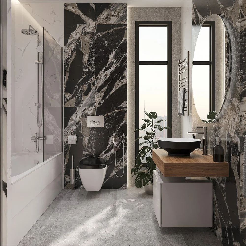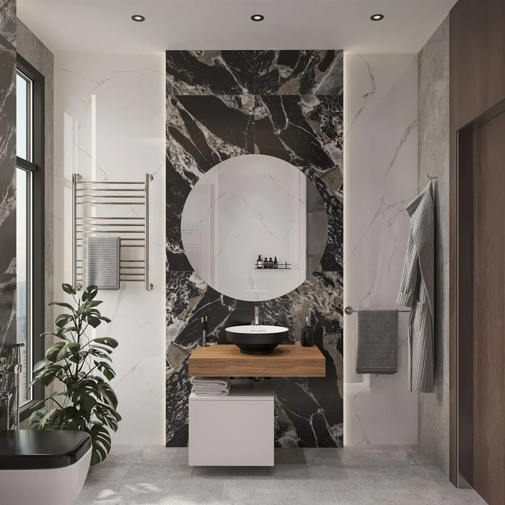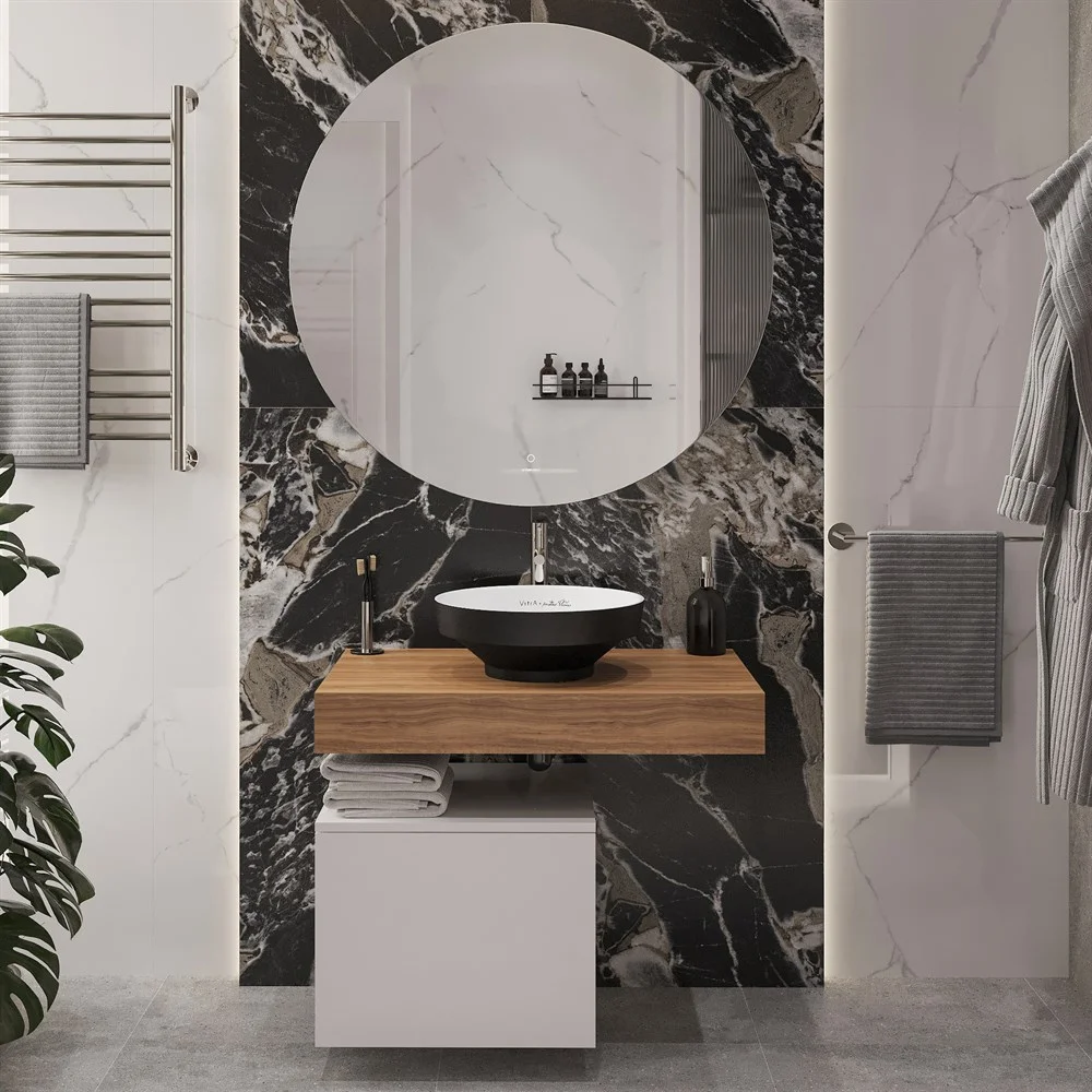 Комплект мебели STWORKI Ольборг 80 столешница дуб французский, без отверстий, с тумбой 50, с раковин