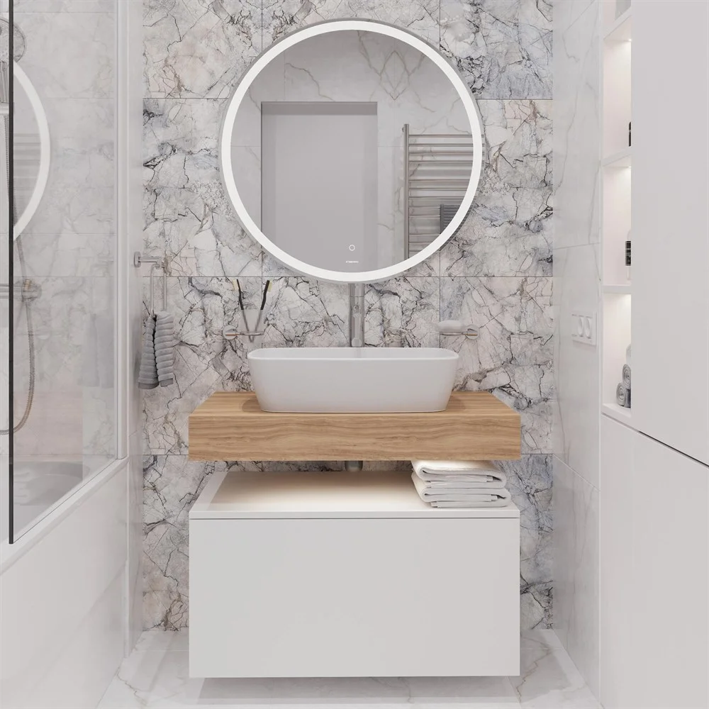Комплект мебели STWORKI Ольборг 80 столешница дуб французский, без отверстий, с тумбой 80, с раковин