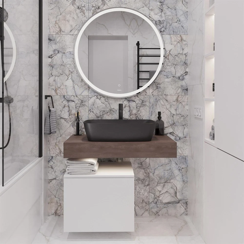 Комплект мебели STWORKI Ольборг 80 столешница дуб карпентер, без отверстий, с тумбой 50, с раковиной