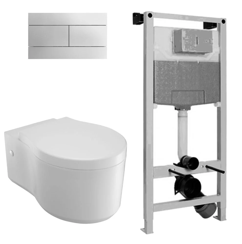Настенная опорная рама с бачком со встроенным механизмом экономии воды 3/6 л (производство Португалия). В сборе (требуется несущая стена, крепления к полу и стене) для подвесных унитазов. Диаметр слива 90-110 мм.