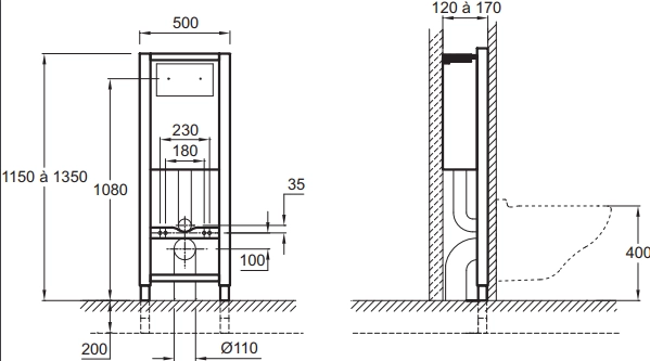 Настенная опорная рама с бачком со встроенным механизмом экономии воды 3/6 л (Производство: Португалия). Диаметр слива 90-110 мм.