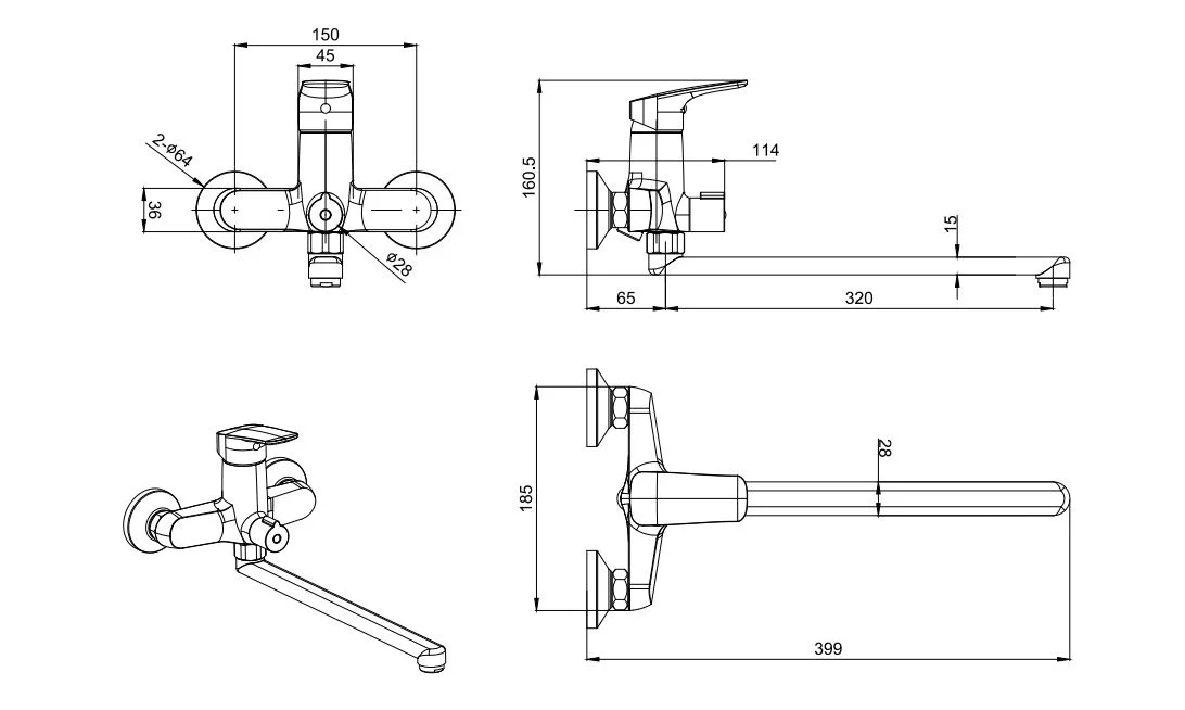 Комплект смесителей Aquatek ВЕГА AQ1033CR хром