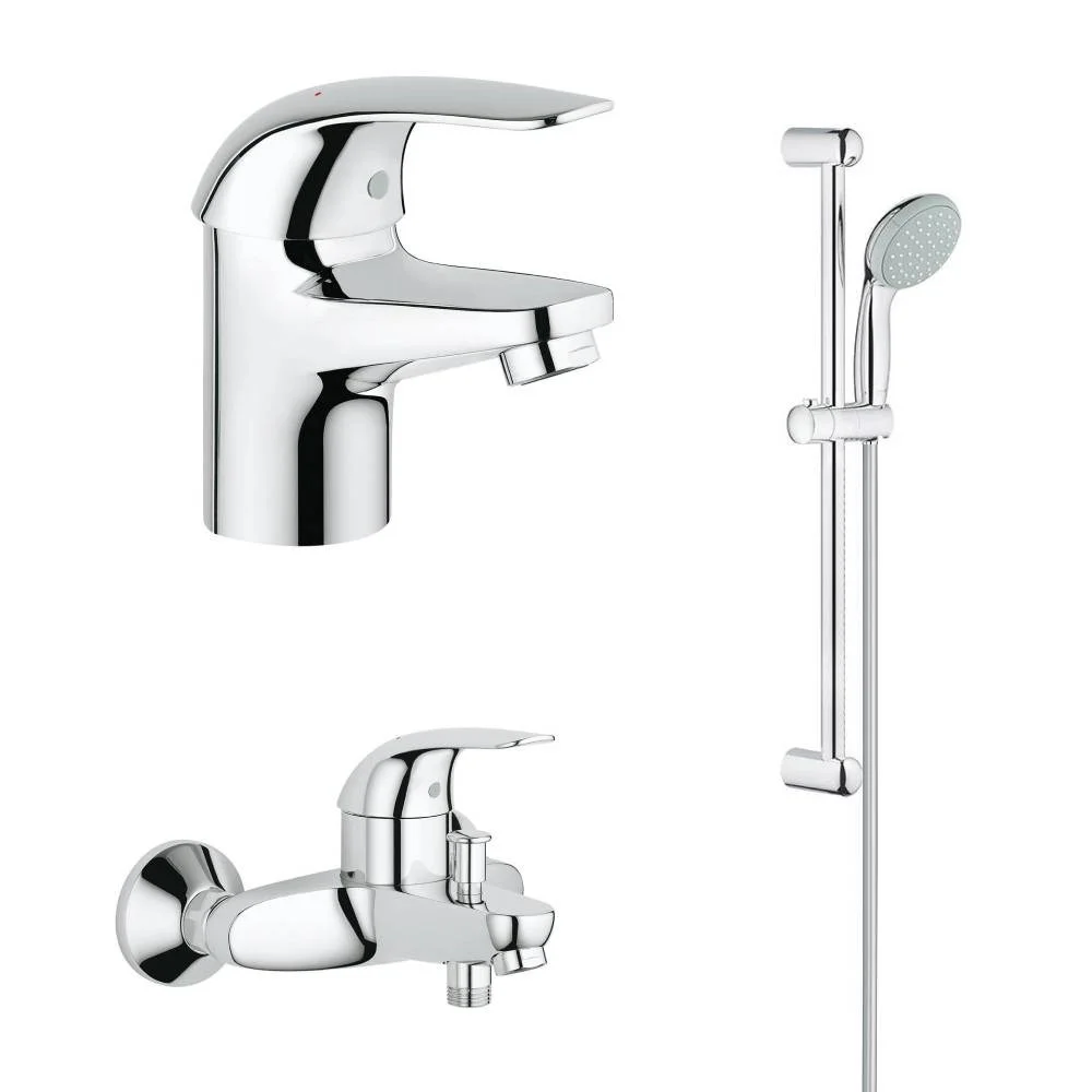 Комплект смесителей GROHE Eueroeco с душевым гарнитуром, хром (124428)