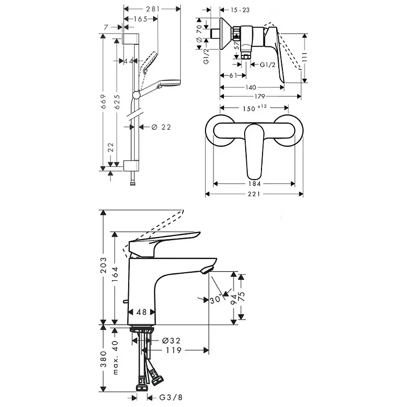 •Смесителя для душа Logis E, настенный монтаж (71610000)