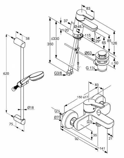 Комплект смесителей Kludi Logo Neo 376850575 3 в 1