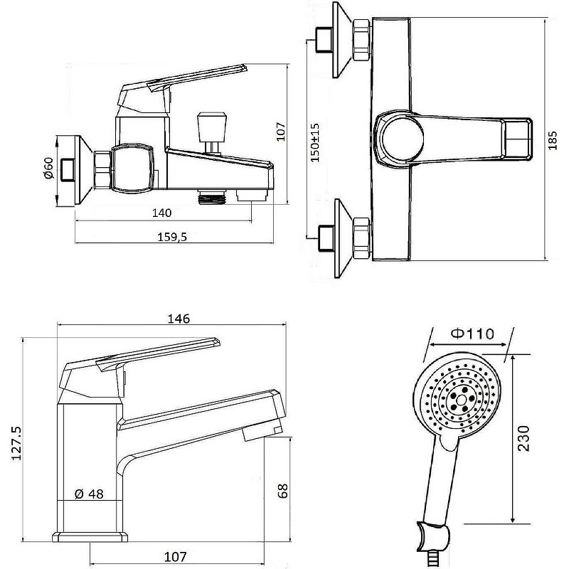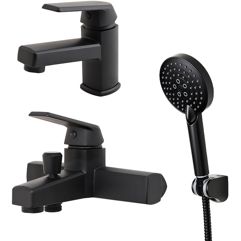Набор полимерных смесителей для ванной комнаты OneLife – отличный выбор для современного интерьера. Фирменный картридж Orange обеспечит легкое управление напором и температурой воды. Вместо привычного латунного сплава он изготовлен из запатентованного высокотехнологичного полимера (выдерживает 510 000 циклов и 53 АТМ без замены изделия после теста на цикличность, исключает возможность обжечься при касании, не подвержен коррозии и окислению, стойкий к отрицательным температурам), что обеспечивает срок службы более 15 лет. Аэратор, обогащая струю воздухом, делает ее мягкой и без брызг. Цвет матовый черный. В комплекте Душевой гарнитур: душевая лейка d 110 мм (3 режима струи, защита от известкового налета RUB CLEAN, с системой AIR IN), шланг в металлической оплетке 1500 мм с защитой от перекручивания, настенный держатель лейки с регулировкой угла наклона.
