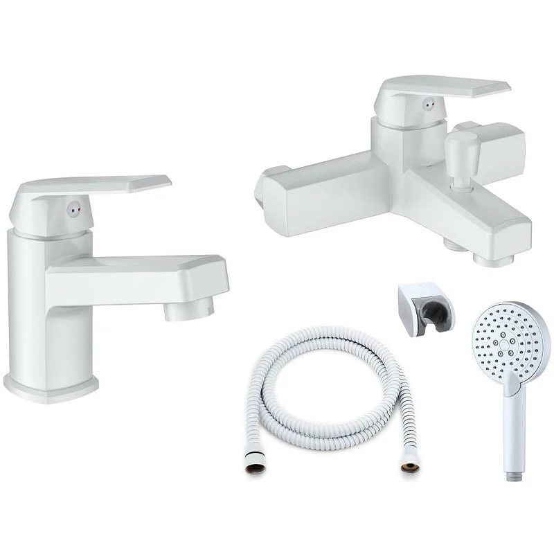 Набор полимерных смесителей для ванной комнаты OneLife – отличный выбор для современного интерьера. Фирменный картридж Orange обеспечит легкое управление напором и температурой воды. Вместо привычного латунного сплава он изготовлен из запатентованного высокотехнологичного полимера (выдерживает 510 000 циклов и 53 АТМ без замены изделия после теста на цикличность, исключает возможность обжечься при касании, не подвержен коррозии и окислению, стойкий к отрицательным температурам), что обеспечивает срок службы более 15 лет. Аэратор, обогащая струю воздухом, делает ее мягкой и без брызг. Цвет глянцевый белый. В комплекте Душевой гарнитур: душевая лейка d 110 мм (3 режима струи, защита от известкового налета RUB CLEAN, с системой AIR IN), шланг в металлической оплетке 1500 мм с защитой от перекручивания, настенный держатель лейки с регулировкой угла наклона.