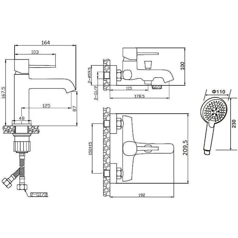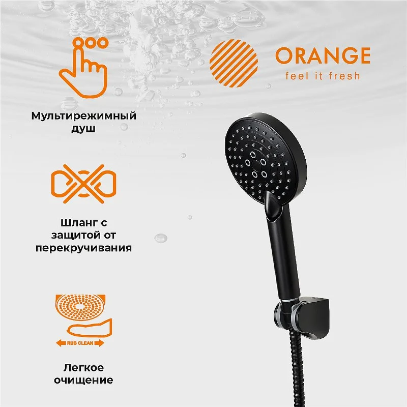 Набор смесителей для ванной комнаты Karl от немецкой компании Orange – отличный выбор для интерьера в стиле минимализм. Латунное изделие устойчиво к коррозии и высоким температурам, а черное матовое покрытие делает незаметными разводы и высохшие капли. Керамический картридж обеспечивает долговечность изделия, стабильную подачу воды и мощный напор. Излив оснащен пластиковым аэратором, он создает ровную мощную струю и легко очищается от известкового налета. В комплекте Душевой гарнитур: душевая лейка d 110 мм (3 режима струи, защита от известкового налета RUB CLEAN, с системой AIR IN), шланг в металлической оплетке 1500 мм с защитой от перекручивания, настенный держатель лейки с регулировкой угла наклона.