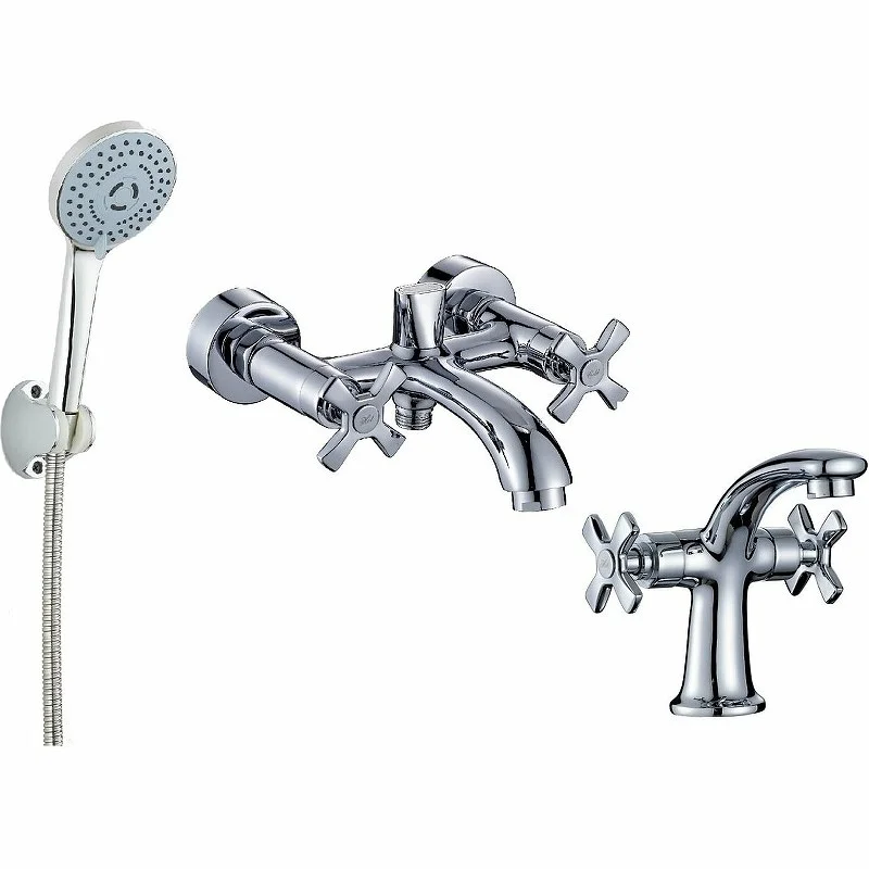 Набор смесителей для ванной комнаты Kristi от немецкой компании Orange – украсит интерьер ванной комнаты в традиционном и классическом стиле. Двухвентильные смесители для ванны и раковины снабжены керамическими кран-буксами. Покрытие глянцевый хром подарит блеск на долгие годы. Материал - пищевая латунь. В комплекте Душевой гарнитур (душевая лейка 3 режима, шланг в металлической оплетке 1500 мм с защитой от перекручивания, держатель лейки).