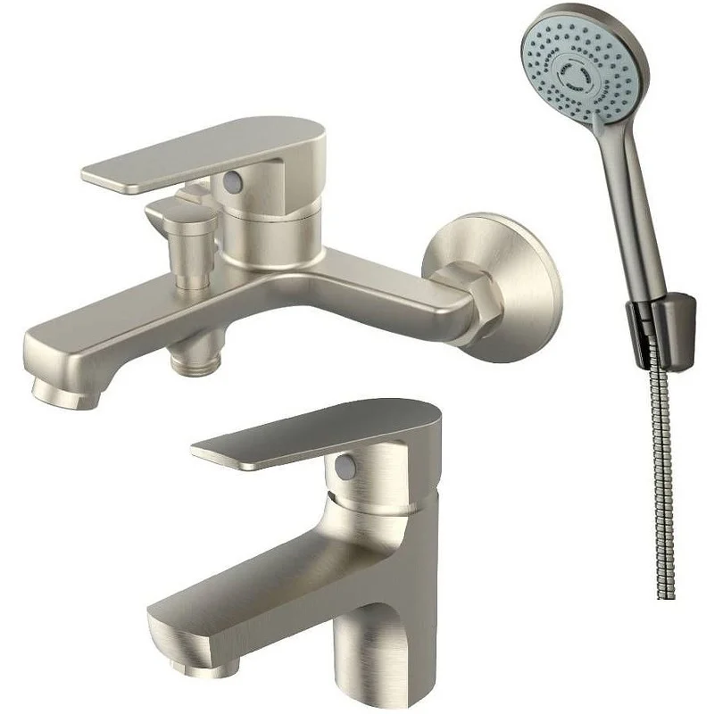 Набор смесителей для ванной комнаты Loop от немецкой компании Orange – отличный выбор для современного интерьера. Латунное изделие устойчиво к коррозии и высоким температурам, а покрытие в цвете матовый никель делает незаметными разводы и высохшие капли. Керамический картридж обеспечивает долговечность изделия, стабильную подачу воды и мощный напор. Излив оснащен пластиковым аэратором, он создает ровную мощную струю и легко очищается от известкового налета. В комплекте Душевой гарнитур: душевая лейка d90 мм (3 режима струи, защита от известкового налета RUB CLEAN, с системой AIR IN), шланг в металлической оплетке 1500 мм с защитой от перекручивания, настенный держатель лейки.