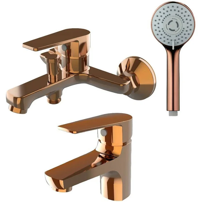 Набор смесителей для ванной комнаты Loop от немецкой компании Orange – отличный выбор для современного интерьера. Латунное изделие с покрытием в цвете глянцевое розовое золото устойчиво к коррозии и истиранию (вакуумное напыление). Керамический картридж обеспечивает долговечность изделия, стабильную подачу воды и мощный напор. Излив оснащен пластиковым аэратором, он создает ровную мощную струю и легко очищается от известкового налета. В комплекте Душевой гарнитур: душевая лейка d90 мм (3 режима струи, защита от известкового налета RUB CLEAN, с системой AIR IN), шланг в металлической оплетке 1500 мм с защитой от перекручивания, настенный держатель лейки.