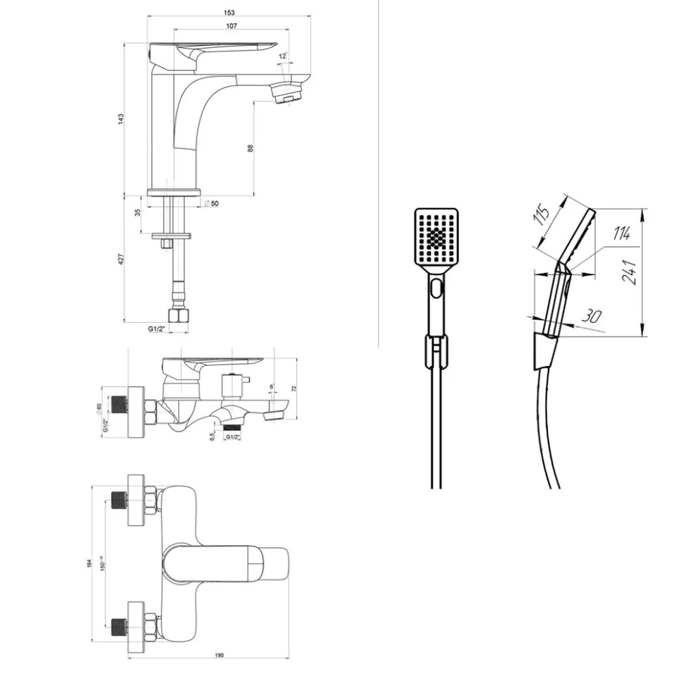Комплект смесителей Paini Garda 3в1, для раковины и ванны с душевым набором, 76CRSET3, хром