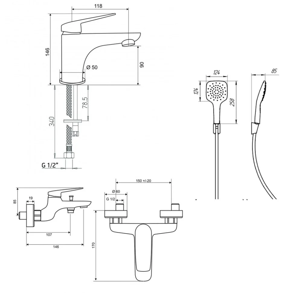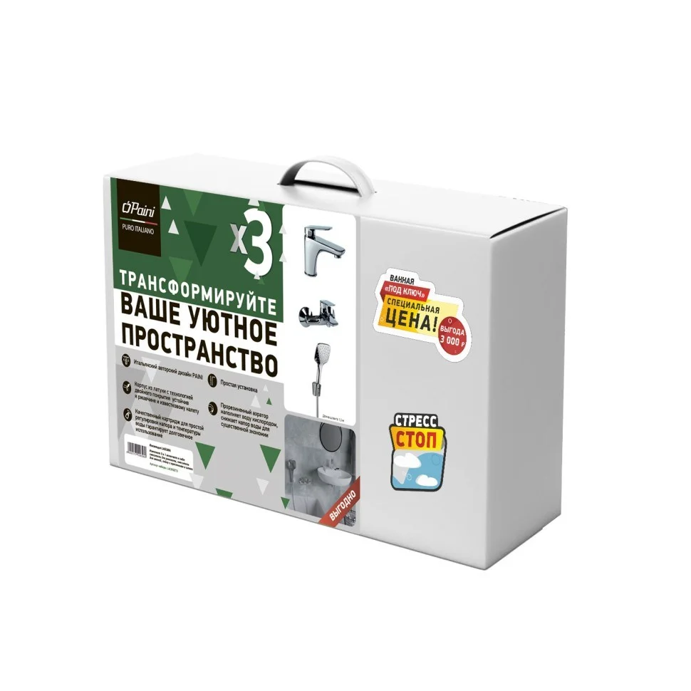 Комплект смесителей Paini Laguna 3в1, для раковины и ванны с душевым набором, LACRSET3, хром