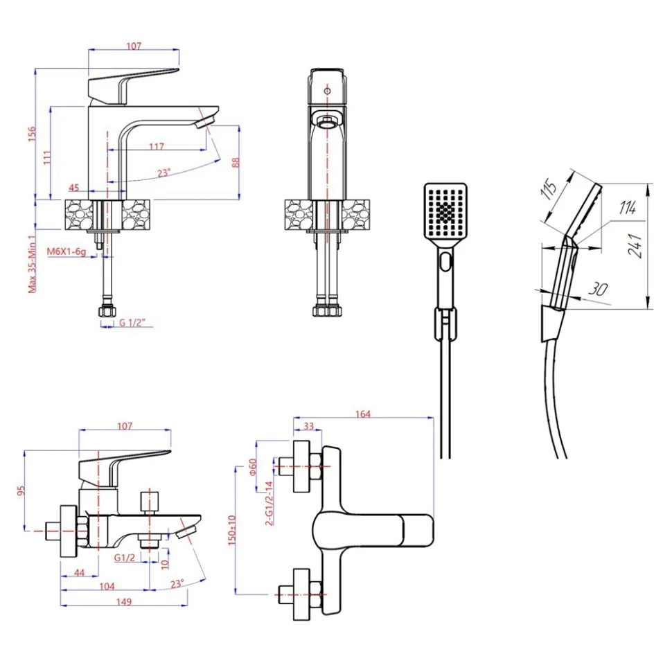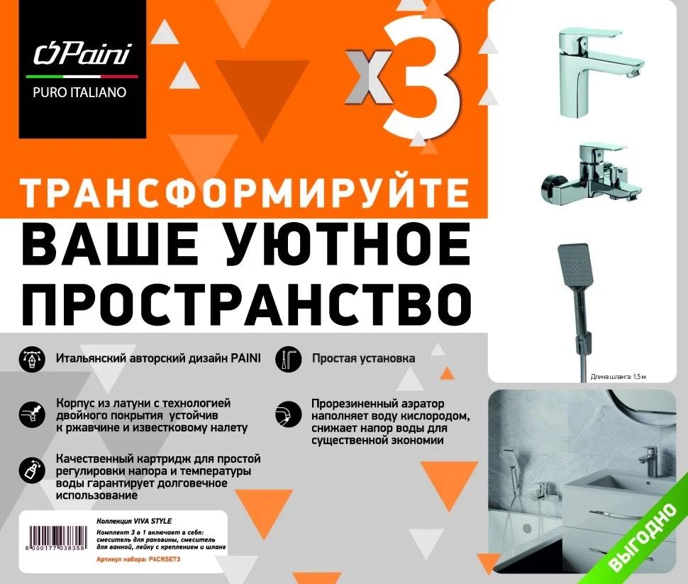 Комплект смесителей Paini Viva Style 3в1, для раковины и ванны с душевым набором, P4CRSET3 , хром