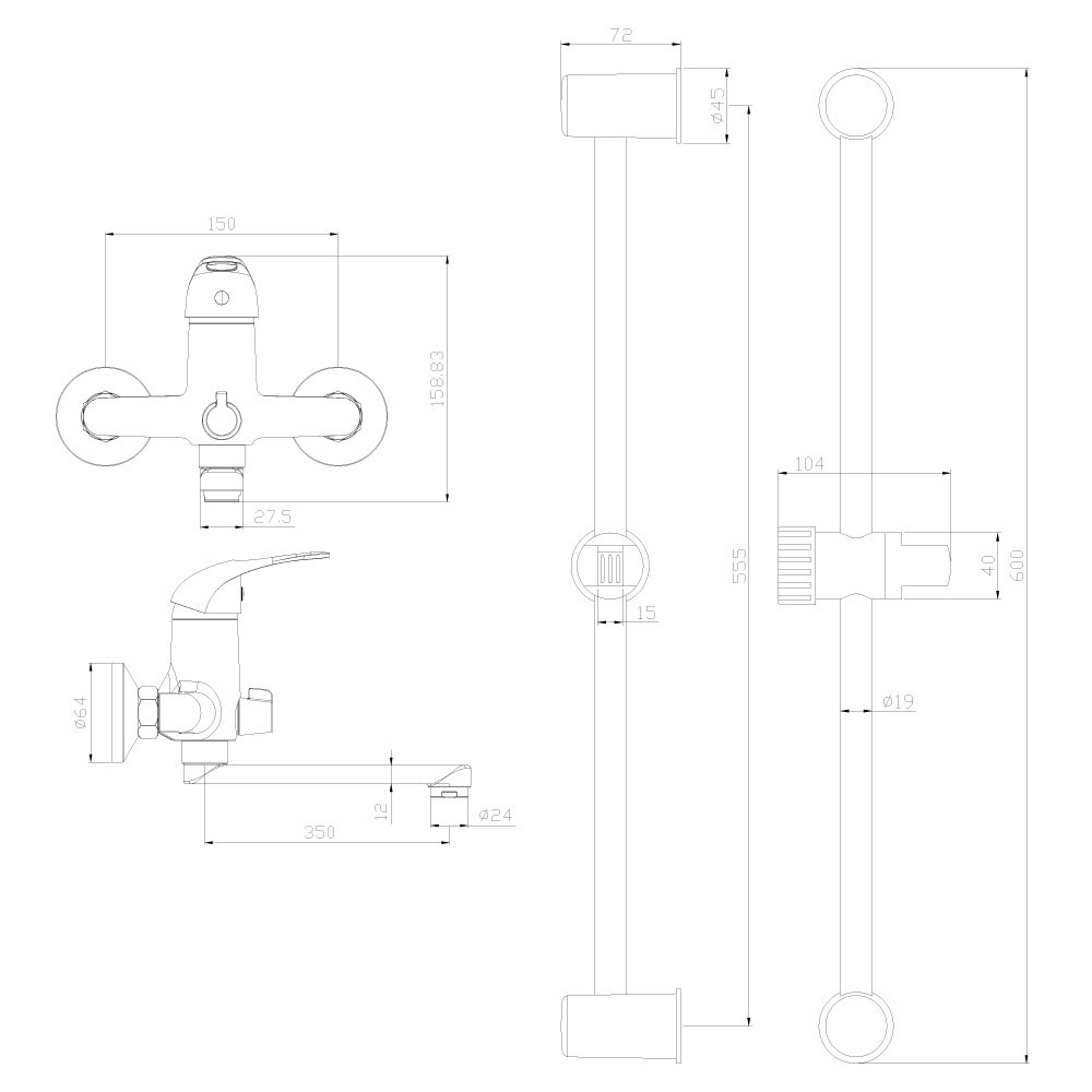 Смеситель универсальный с плоским поворотным изливом 350 мм:- Пластиковый аэратор с функцией легкой очистки