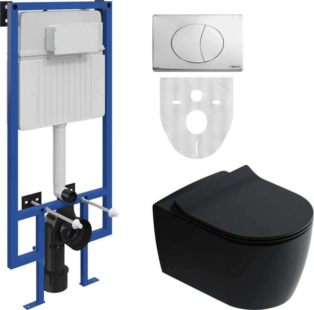 Комплект Унитаз подвесной STWORKI Ноттвиль SETK3104-2616 безободковый, с микролифтом, черный + Систе