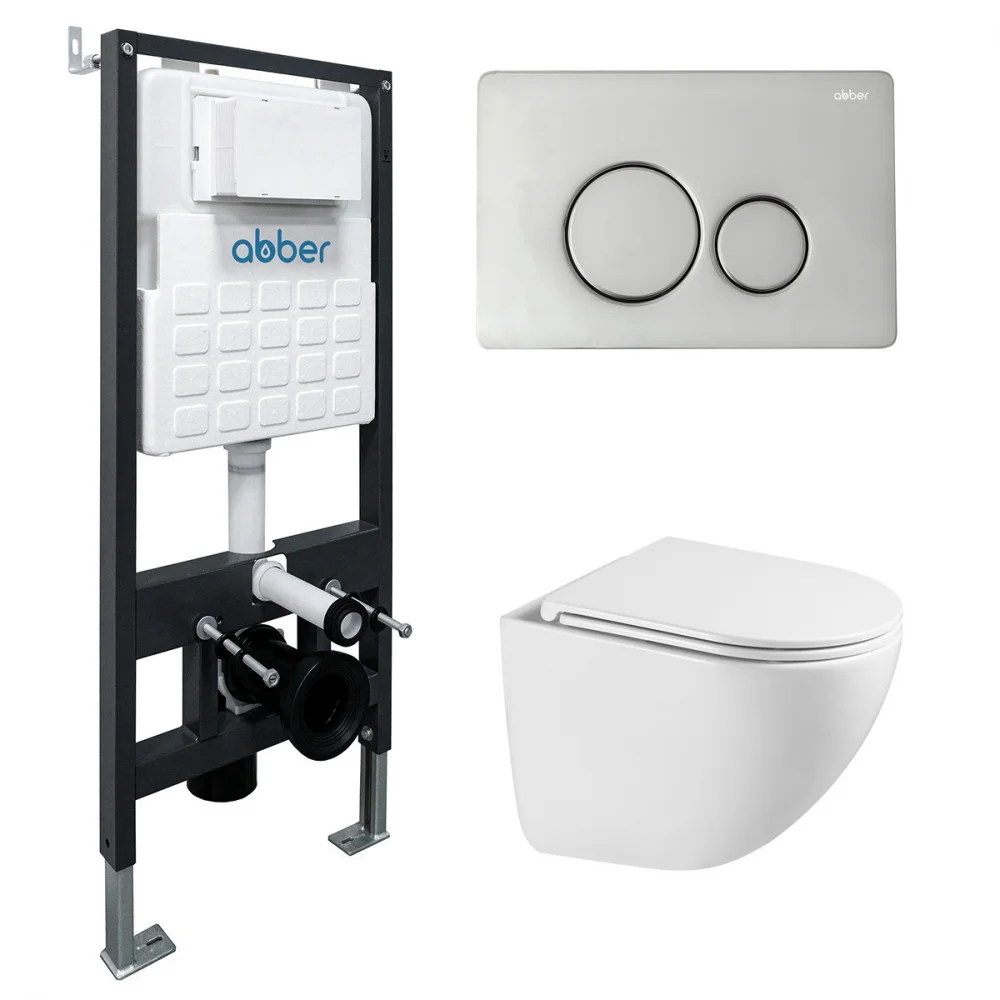 Комплект унитаза ABBER Bequem AC1131TC белый, с закрытым дном с инсталляцией AC0105 и кнопкой AC0121 хром глянцевый