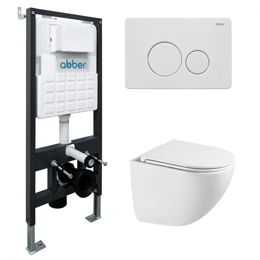 Комплект унитаза ABBER Bequem AC1131TC белый, с закрытым дном с инсталляцией AC0105 и кнопкой AC0121MW белая матовая