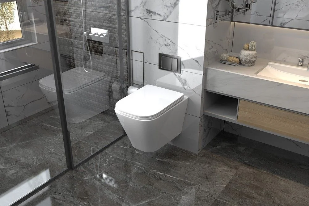 Комплект унитаза ABBER Rechteck AC1201 белый с инсталляцией AC0105 и кнопкой AC0120MMG золото матовое AC1201-AC0105-AC0120MMG