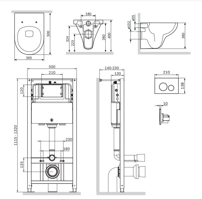 Полностью готовый к установке комплект: система инсталляции с клавишей подвесной унитаз с сиденьем. Неразборная рама из стального профиля выдерживает нагрузку до 400 кг. Полностью изолированный бачок с качественной двухрежимной смывной арматурой укомплектован пневматической клавишей в цвете глянцевый хром. В комплекте все необходимые патрубки и крепления а также прокладка между унитазом и стеной - звукоизоляция.
