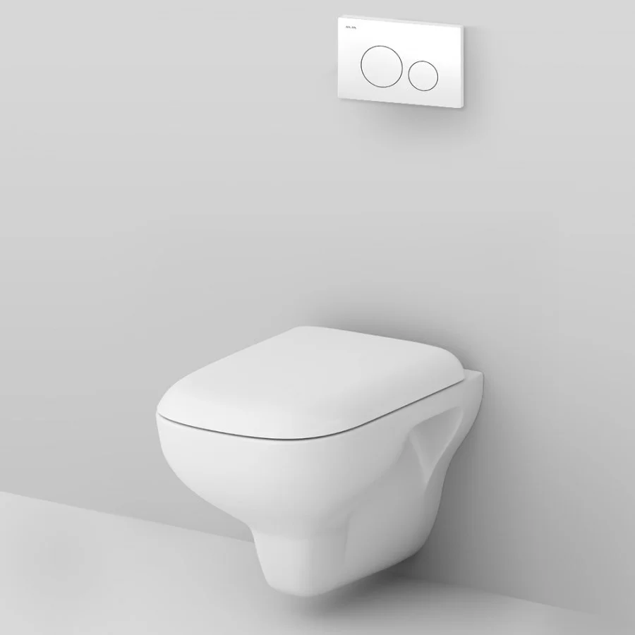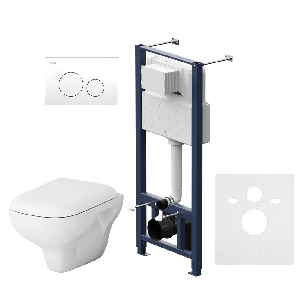 Полностью готовый к установке комплект: система инсталляции с клавишей подвесной унитаз сиденьем.
