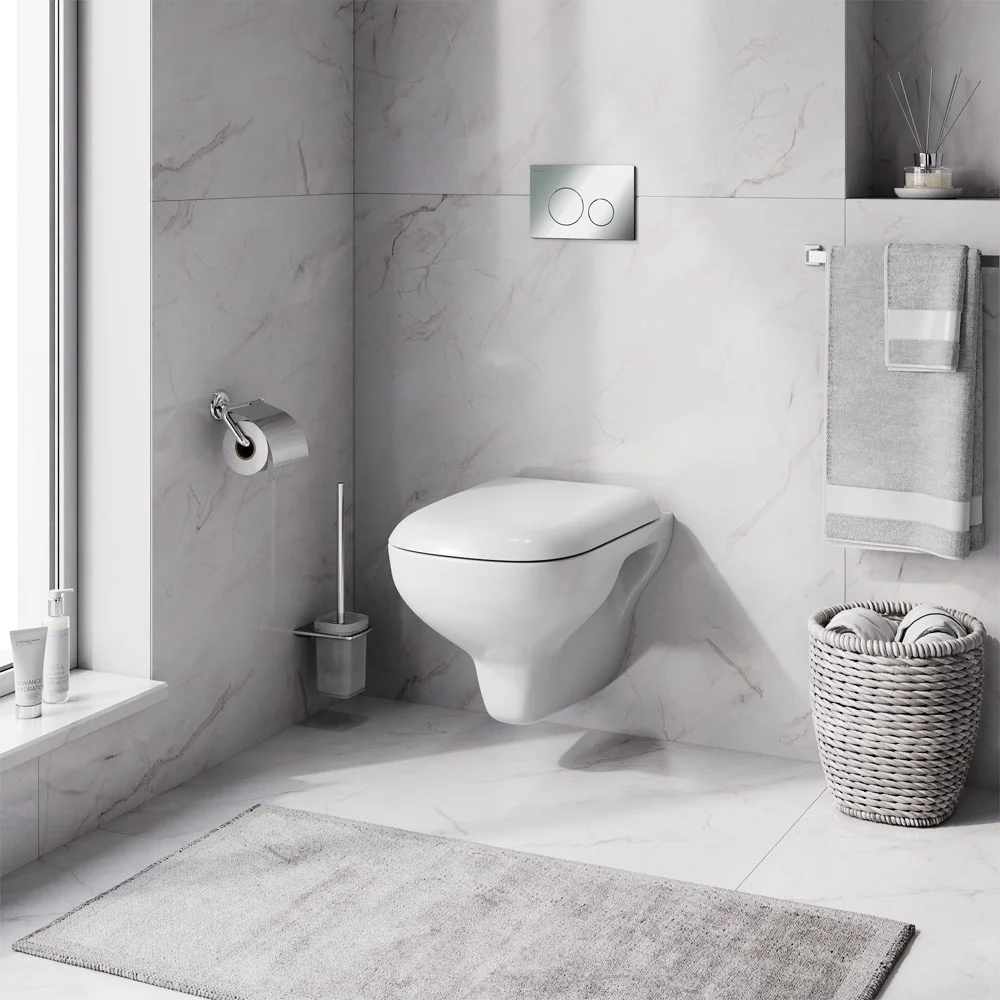 Полностью готовый к установке комплект: система инсталляции с клавишей подвесной унитаз сиденьем.