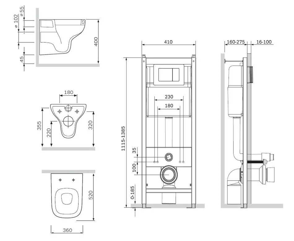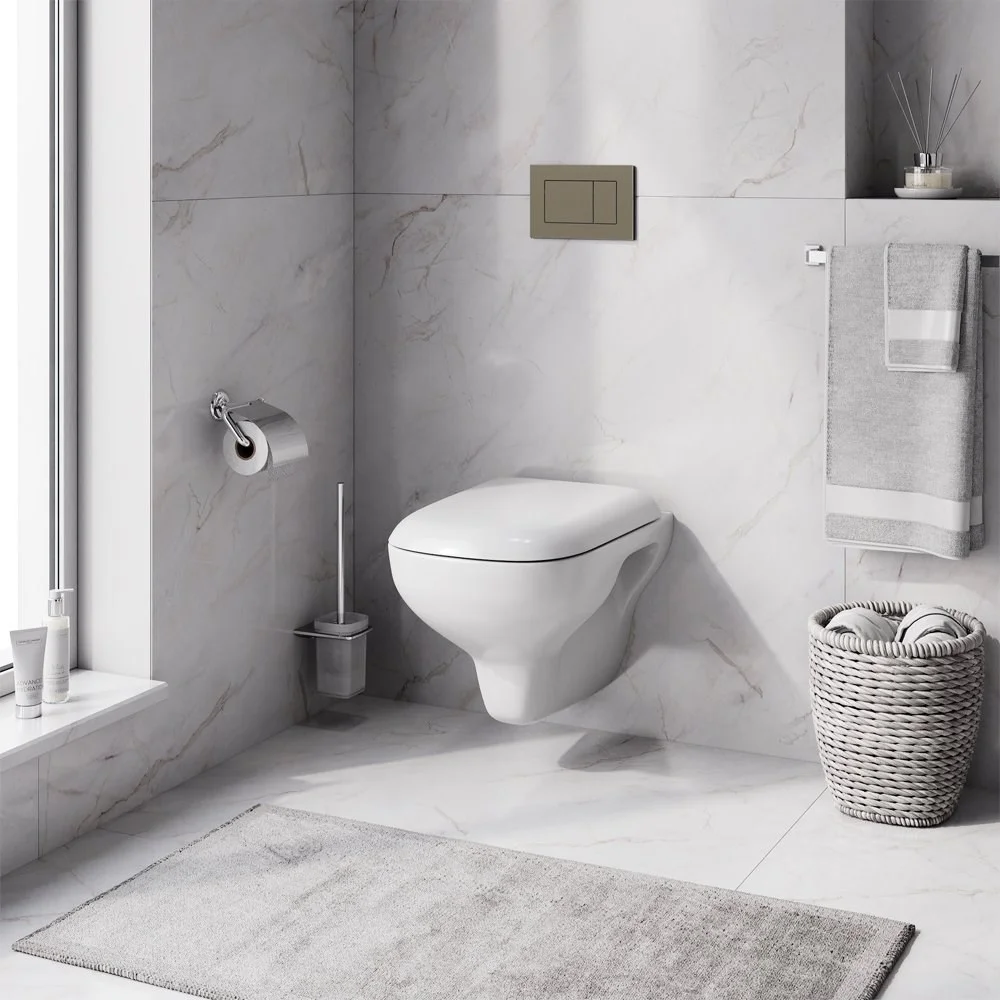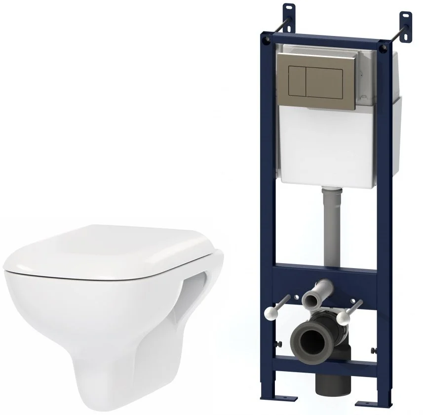 Полностью готовый к установке комплект: система инсталляции с клавишей подвесной унитаз с сиденьем.