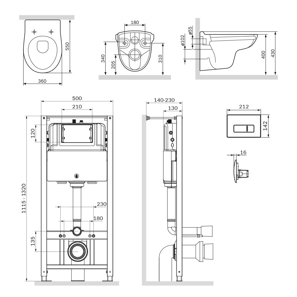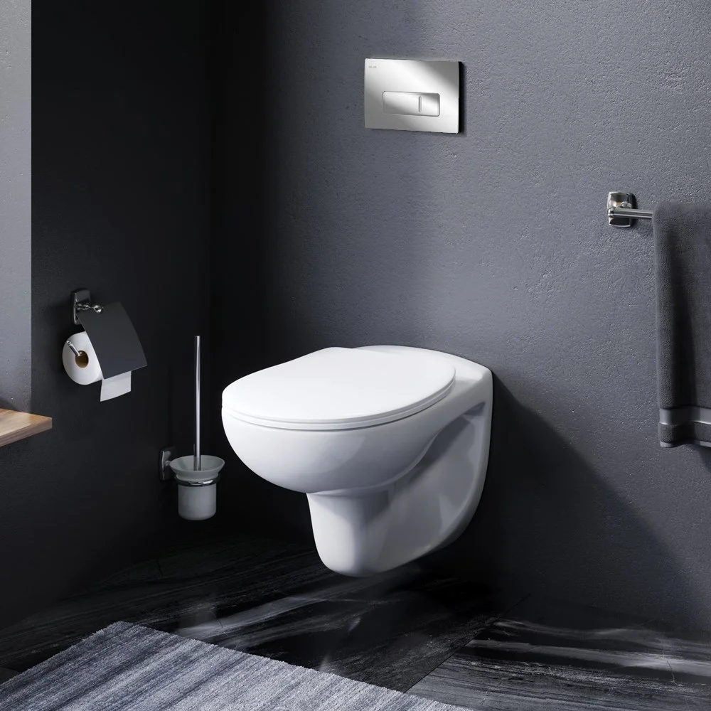 Полностью готовый к установке комплект: система инсталляции с клавишей подвесной унитаз с сиденьем. Неразборная рама из стального профиля выдерживает нагрузку до 400 кг. Полностью изолированный бачок с качественной двухрежимной смывной арматурой - комфортное использование благодаря низкому уровню шума - менее 20 Дб. Укомплектован пневматической клавишей в цвете глянцевый хром. В комплекте все необходимые патрубки и крепления а также прокладка между унитазом и стеной - звукоизоляция.