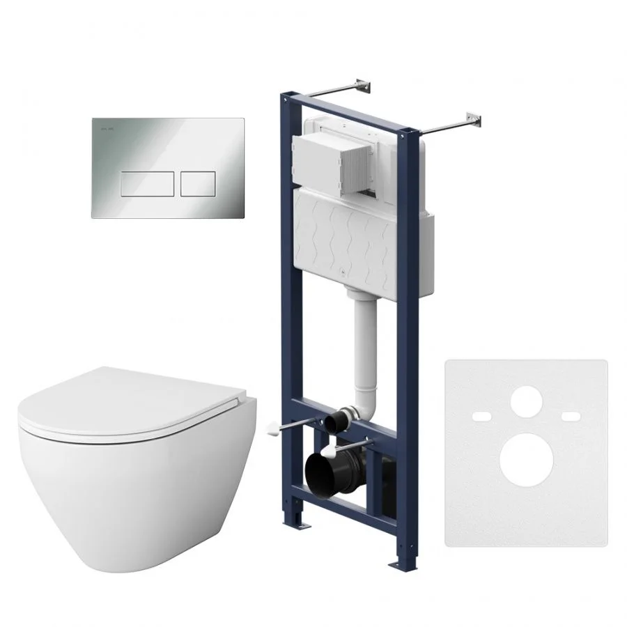 Полностью готовый к установке комплект: система инсталляции с клавишей подвесной унитаз сиденьем.