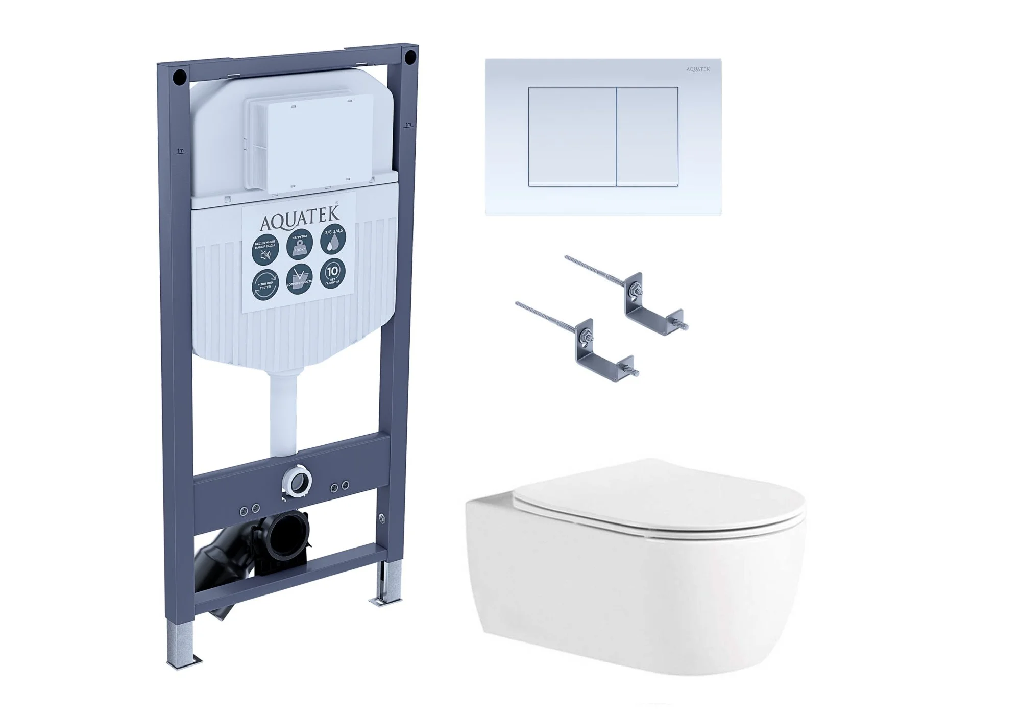 Комплект унитаза Aquatek SET ЕВРОПА New-INS23-009 4в1 с инсталляцией, клавишей смыва и сиденьем микролифт