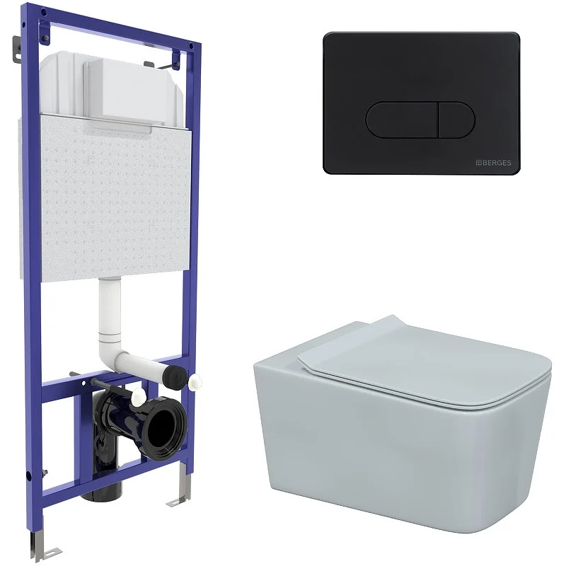 Комплект унитаза BERGES FLOE с инсталляцией NOVUM525, кнопкой D5 Soft Touch черной, сиденье дюроплас