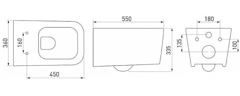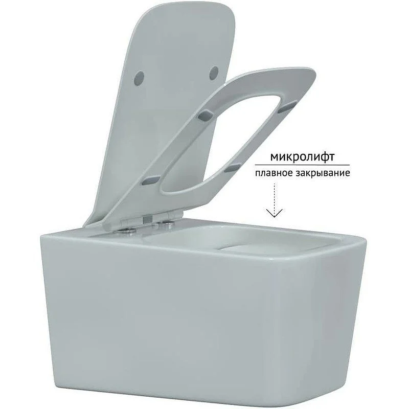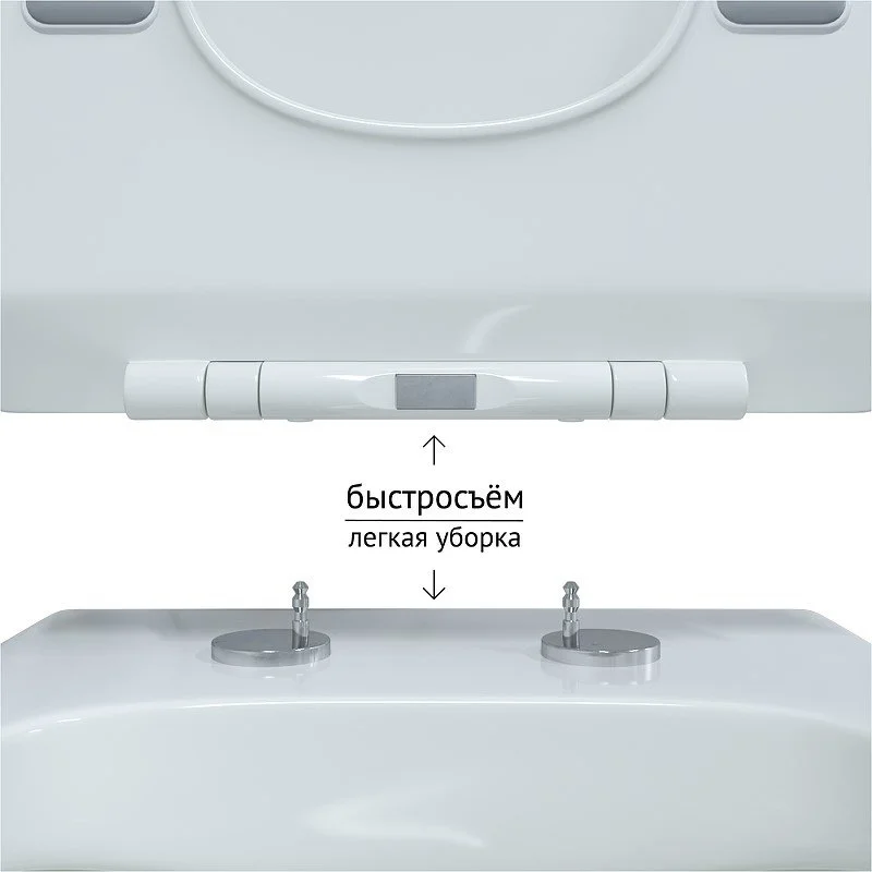 Безободковая система смыва, антибактериальное покрытие, экономия воды, скрытый крепеж