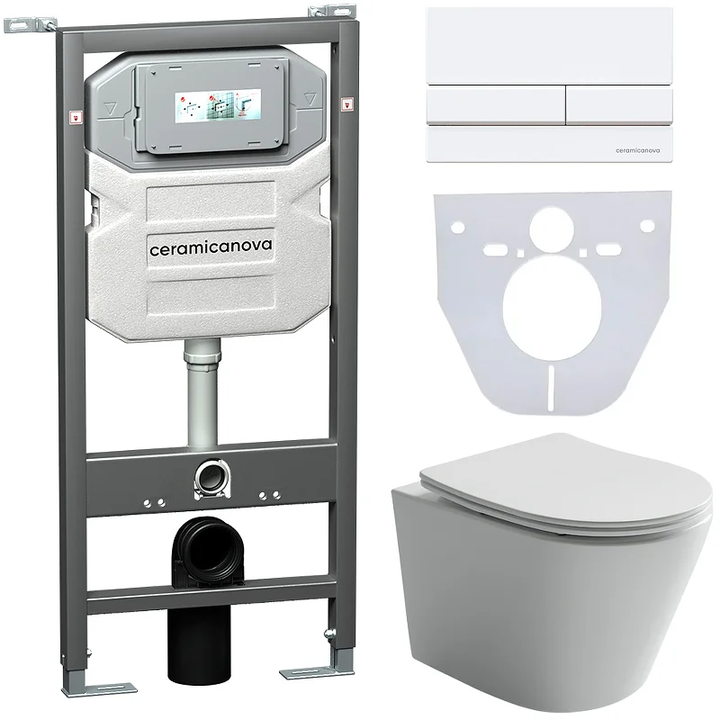 Комплект унитаза Ceramica Nova Balearica Rimless CN6000 c шумоизоляцией CN1000 инсталляцией Envision клавишей смыва Flat белый и креплениями CN1002W