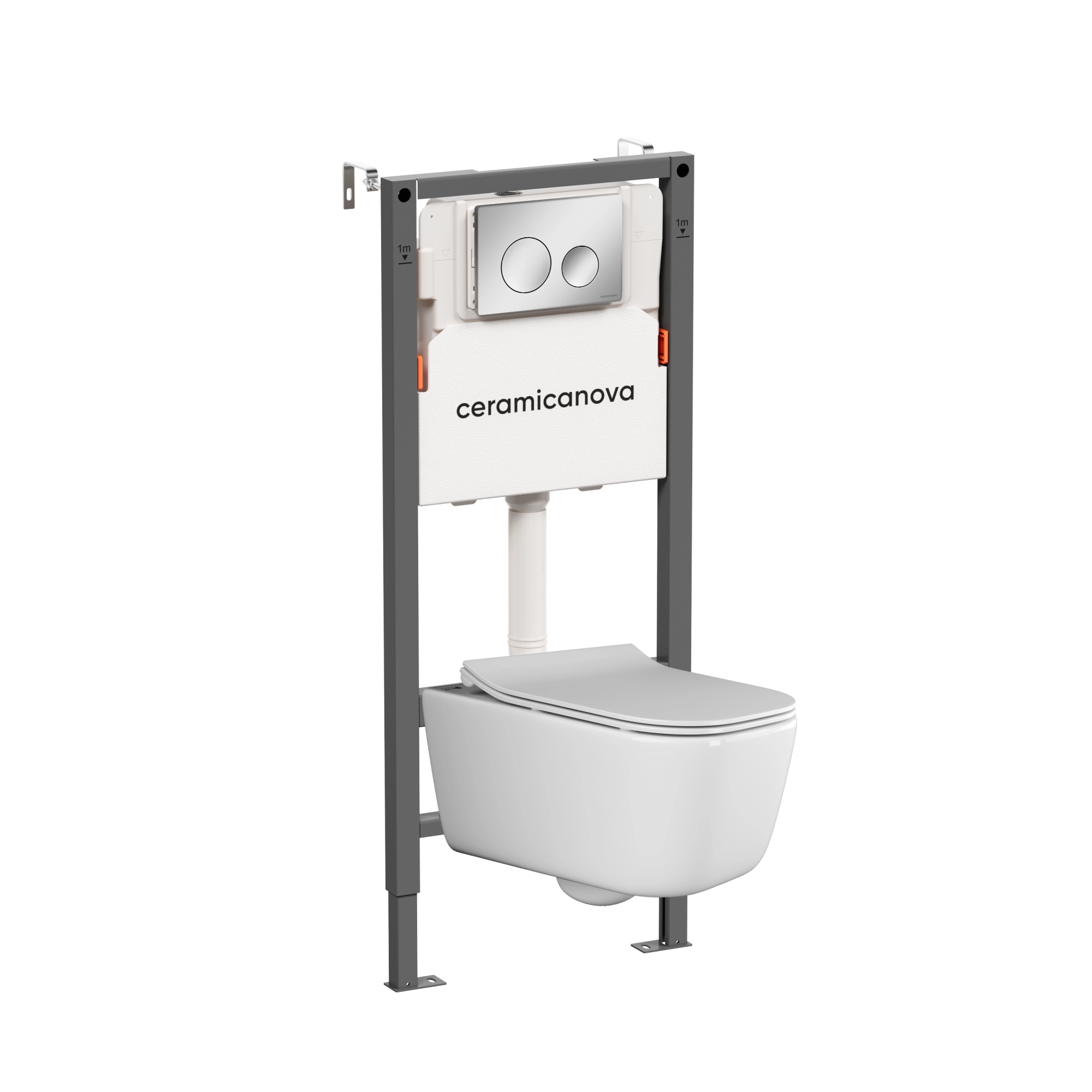Комплект унитаза Ceramica Nova NEW DAY Rimless CN3005_121001CH с инсталляцией Balance и клавишей смыва Circle, хром