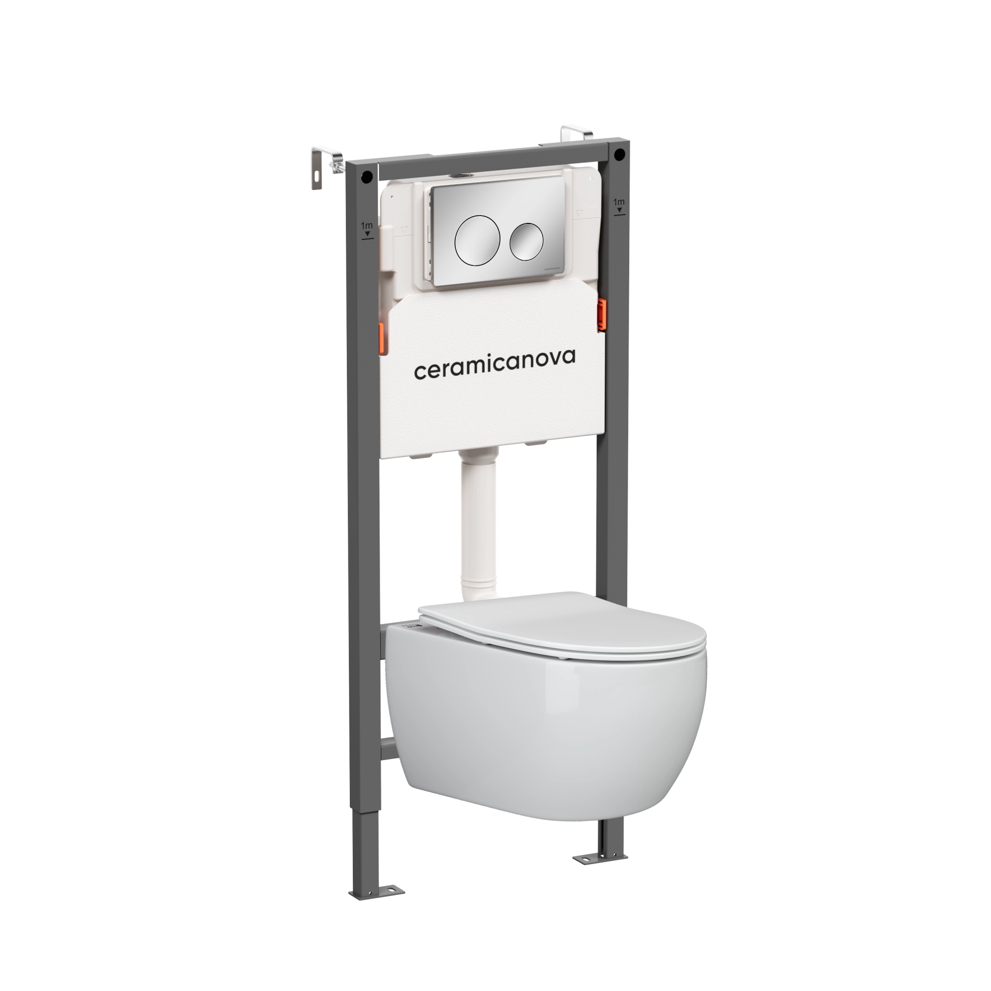 Комплект унитаза Ceramica Nova PLAY Rimless CN3001_121001CH с инсталляцией Balance и клавишей смыва Circle, хром