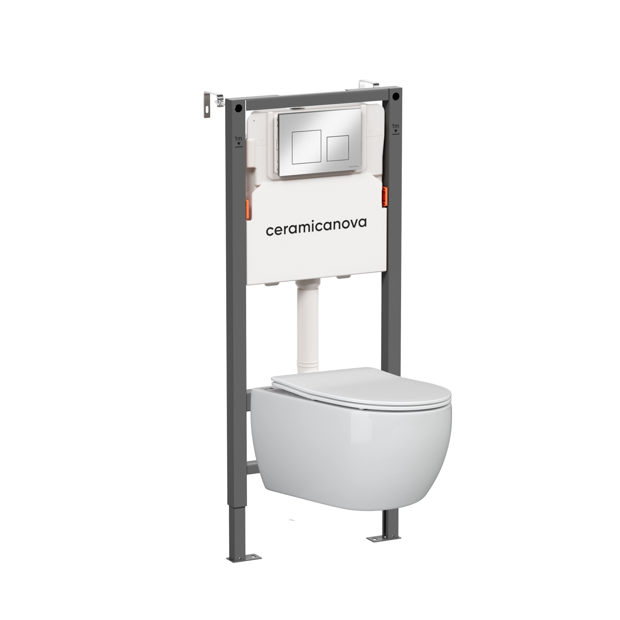 Комплект унитаза Ceramica Nova PLAY Rimless CN3001_121002CH с инсталляцией Balance и клавишей смыва Square, хром