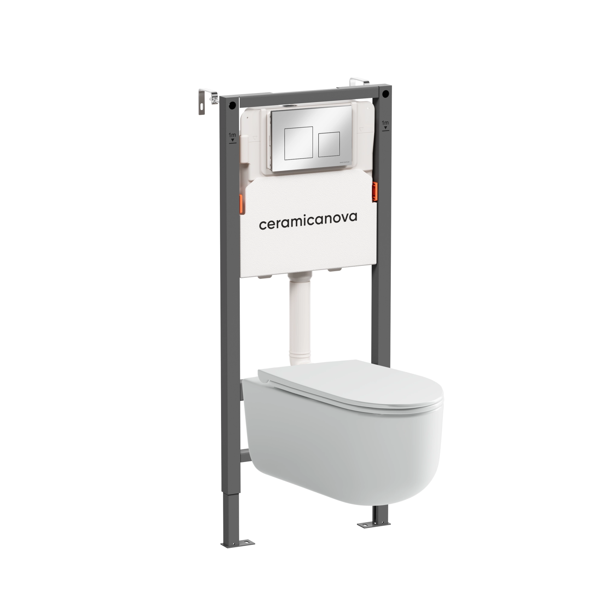 Комплект унитаза Ceramica Nova Ulma Rimless CN4006_121002CH с инсталляцией Balance и клавишей смыва Square, хром