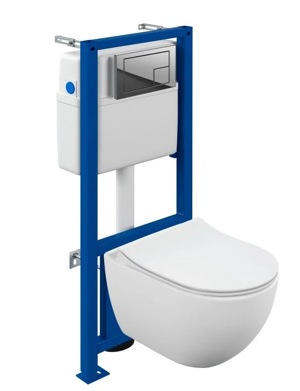 Унитаз подвесной, крышка-сиденье, инсталляция, кнопка смыва, шумоизоляционная прокладка, монтажный комплект, гарантийный талон/инструкция