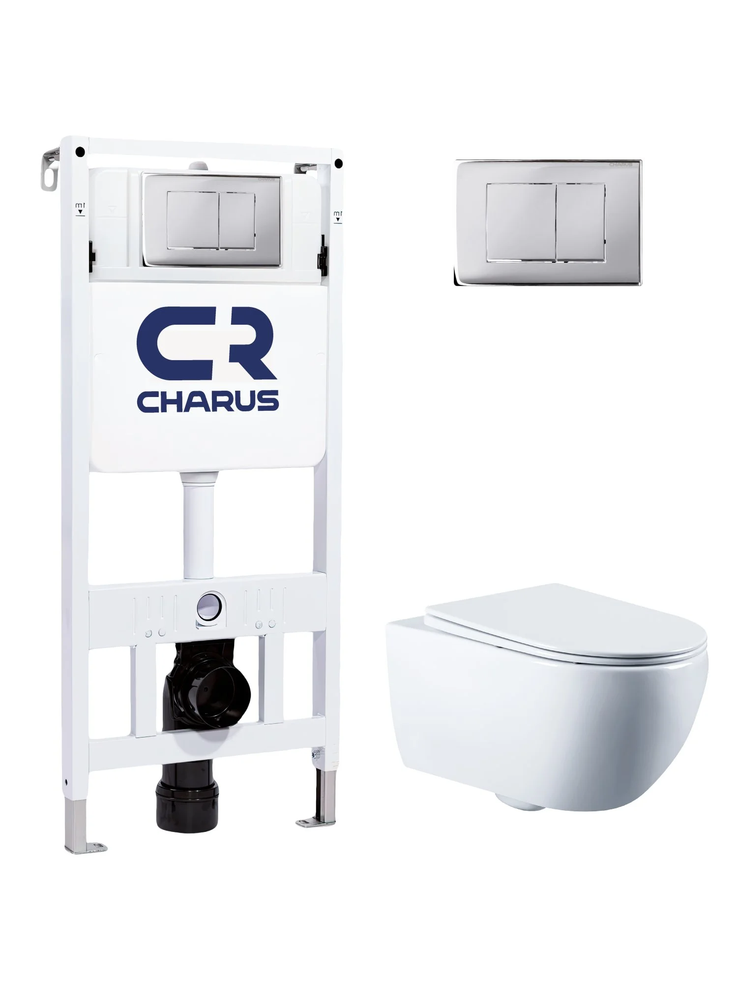 Комплект унитаза CHARUS CHARUS, EWC700-125W с инсталляцией CC.300.80.01 и клавишей Minimalista хром FP.310.21.01 (SET.125W.21.1)
