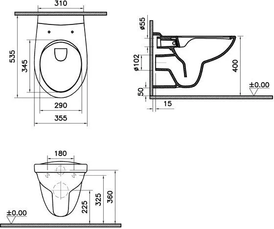 Комплект унитаза DIWO Анапа безободковыйD с крышкой-сиденьем DIWO Анапа 804-003-701 с системой инста 580662