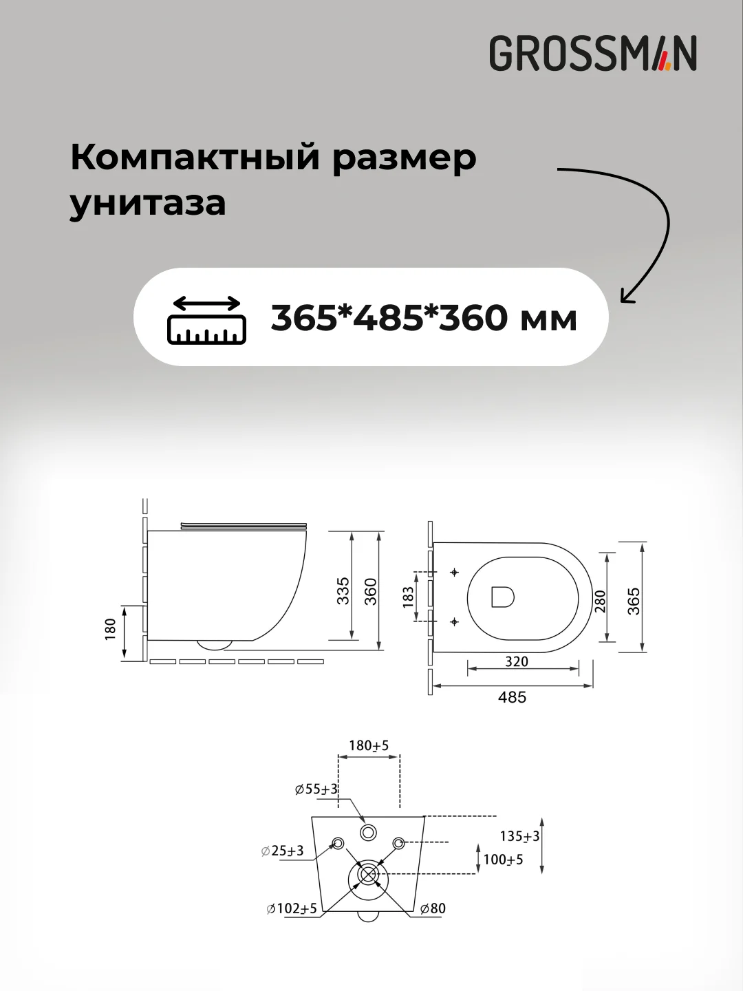 Комплект инсталляции GROSSMAN 900.K31.01.000 с клавишей смыва 700.K31.01.100.100 и унитазом GROSSMAN GR-4455S арт.97.4455S.01.100