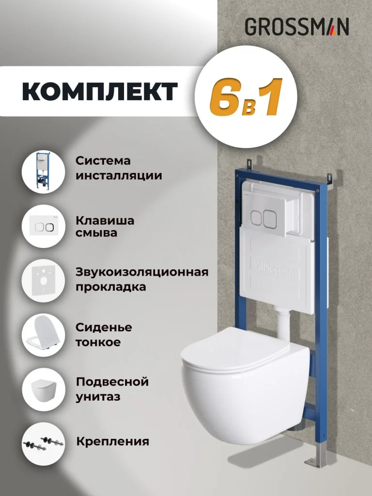 Комплект унитаза GROSSMAN с инсталляцией 900.K31.01.000 клавишей смыва 700.K31.02.000.000 унитаз GR-