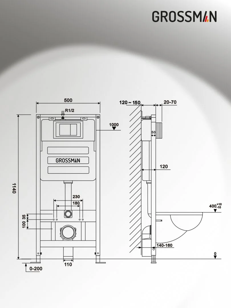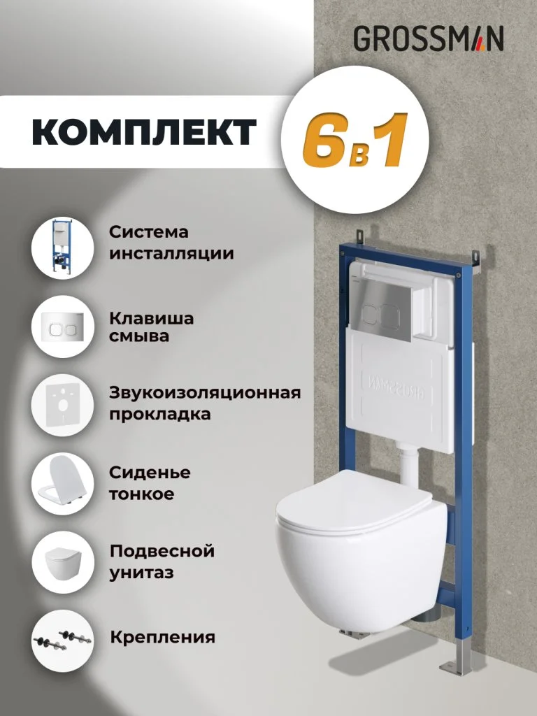 Комплект унитаза GROSSMAN с инсталляцией 900.K31.01.000 клавишей смыва 700.K31.02.100.100 унитаз GR-